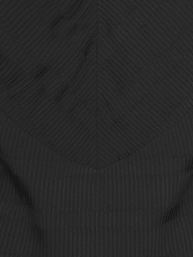 - black- winkled plisse- round neck- long sleeves- adjustable wrinkled sleeves with drawstring- straight hem